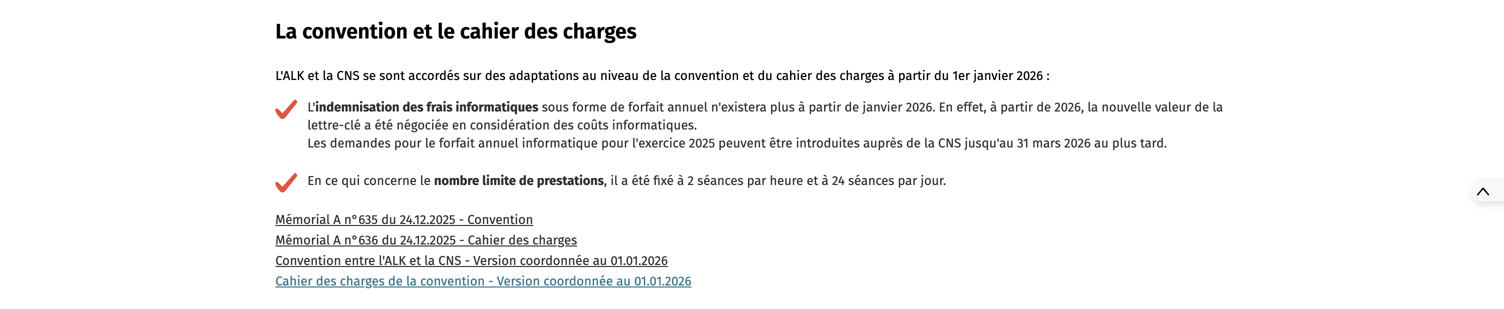 Kiné au Luxembourg : la mise à jour de facturation CNS d'avril 2026